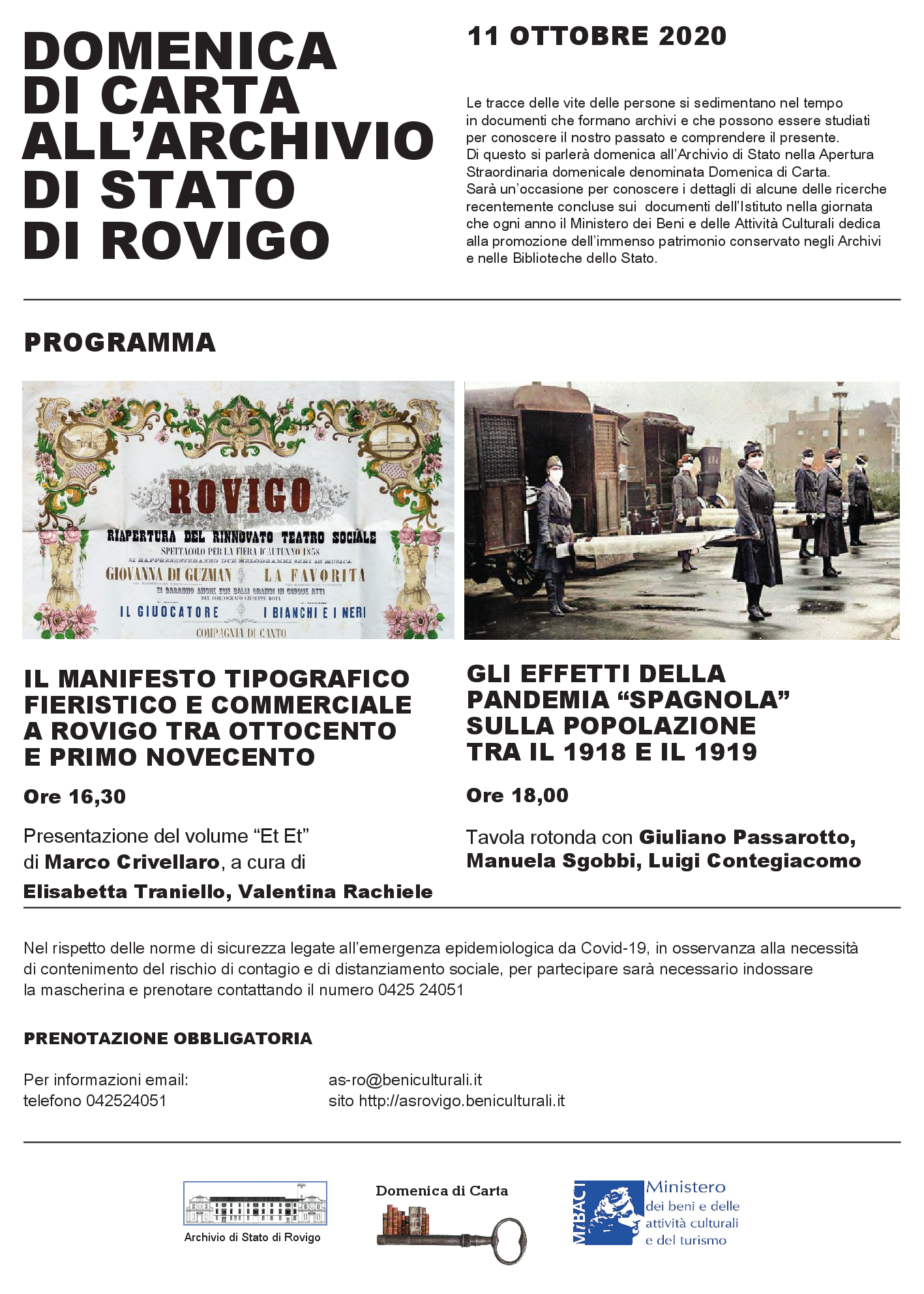 Nel rispetto delle norme di sicurezza legate all'emergenza epidemiologica da Covid-19, in osservanza alla necessità di contenimento del rischio di contagio e di distanziamento sociale, per partecipare sarà necessario indossare la mascherina e prenotare contattando il numero 0425 24051