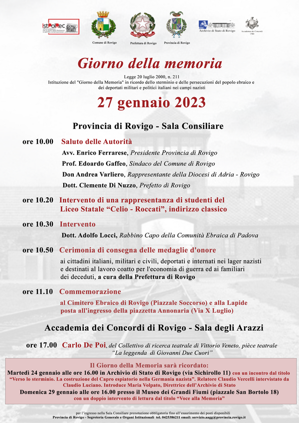 L'Archivio di Stato è lieto di partecipare alle commemorazioni per il Giorno della Memoria 2023.