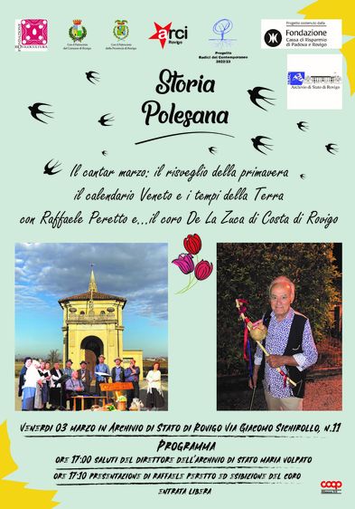 CANTAR MARZO Venerdì 3 marzo 2023 alle ore 17 presso l’Archivio di Stato di Rovigo a cura dell’ARCI ci incontreremo per rivivere con il Coro de la Zuca – Costa di Rovigo e la presentazione di Raffaele Peretto l’antica tradizione veneta di festeggiare il nuovo anno, che durante il periodo della Serenissima, a differenza di altri governi, iniziava il primo marzo.