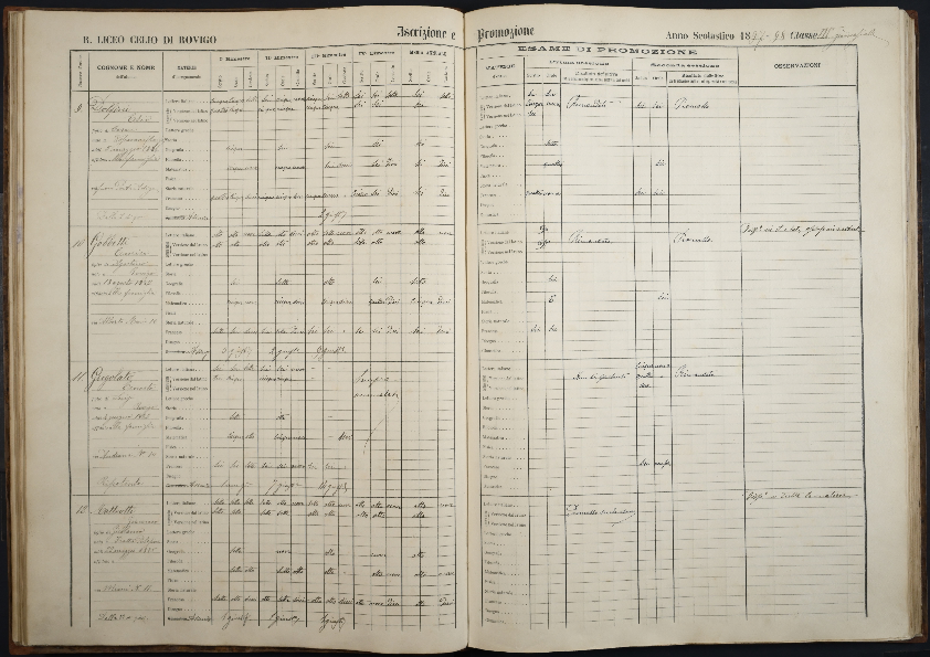 Registro n. 73 facente parte del fondo, Liceo statale Celio Roccati di Rovigo, Iscrizioni e promozioni dal 1897 al 1903, scheda riguardante Giacomo Matteotti in cui Giacomo risulta iscritto alla classe III ginnasiale con ottimi voti (media del 8/9 in tutte le materie,10 in francese) anticipando quella che sarebbe stata una carriera di fine giurista (laureato in Giurisprudenza a Bologna col massimo dei voti ) e studioso di materie giuridiche con la pubblicazione nel 1910 per l’editore torinese Fratelli Bocca del saggio: La recidiva. Saggio di revisione critica con dati statistici.