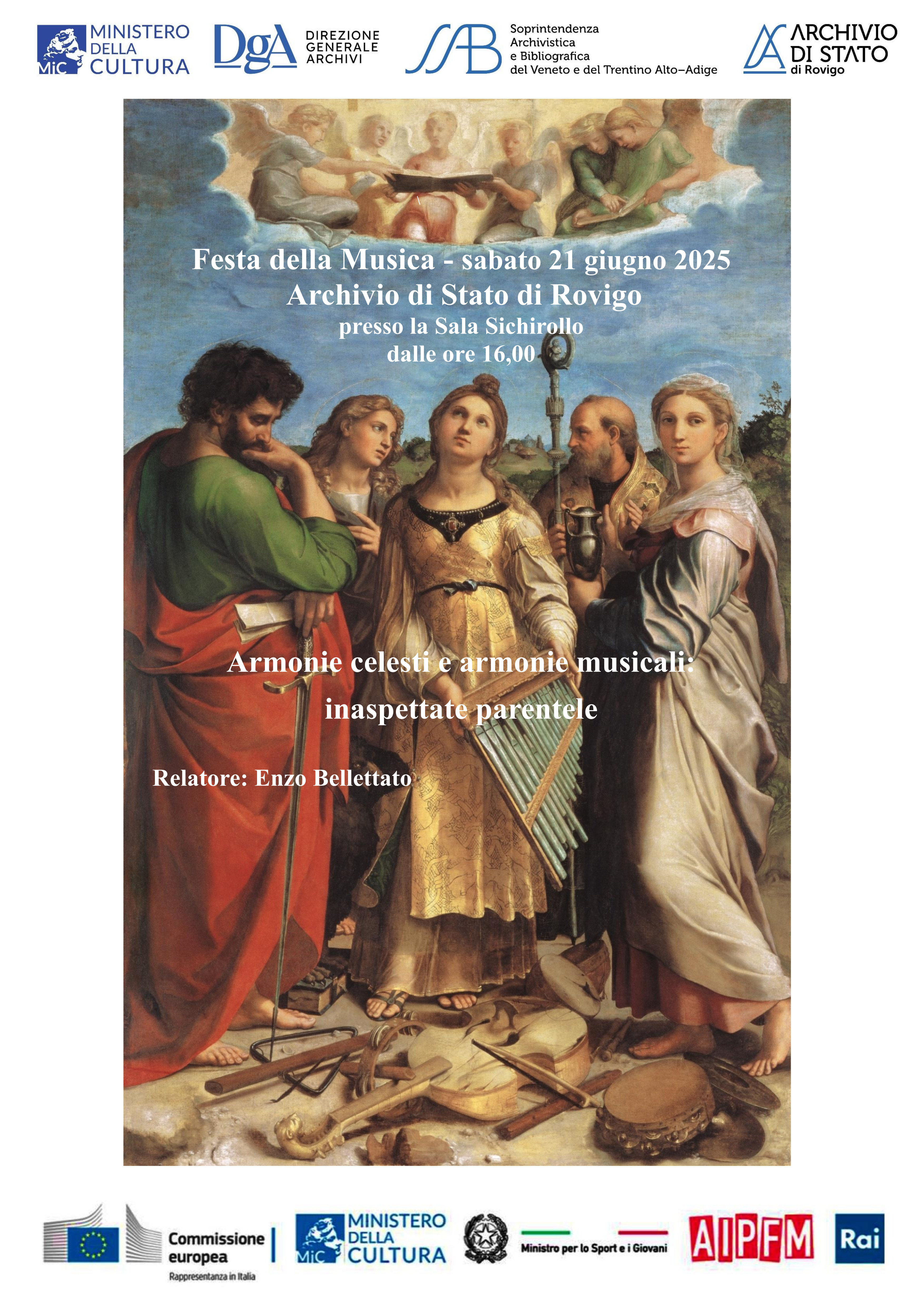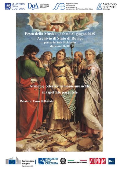 Sabato 21 giugno 2025 in occasione della Festa della Musica l’Archivio di Stato di Rovigo organizza un evento a partire dalle ore 16,00 presso la Sala Sichirollo dell’Archivio di Stato in via Sichirollo 11 a Rovigo.